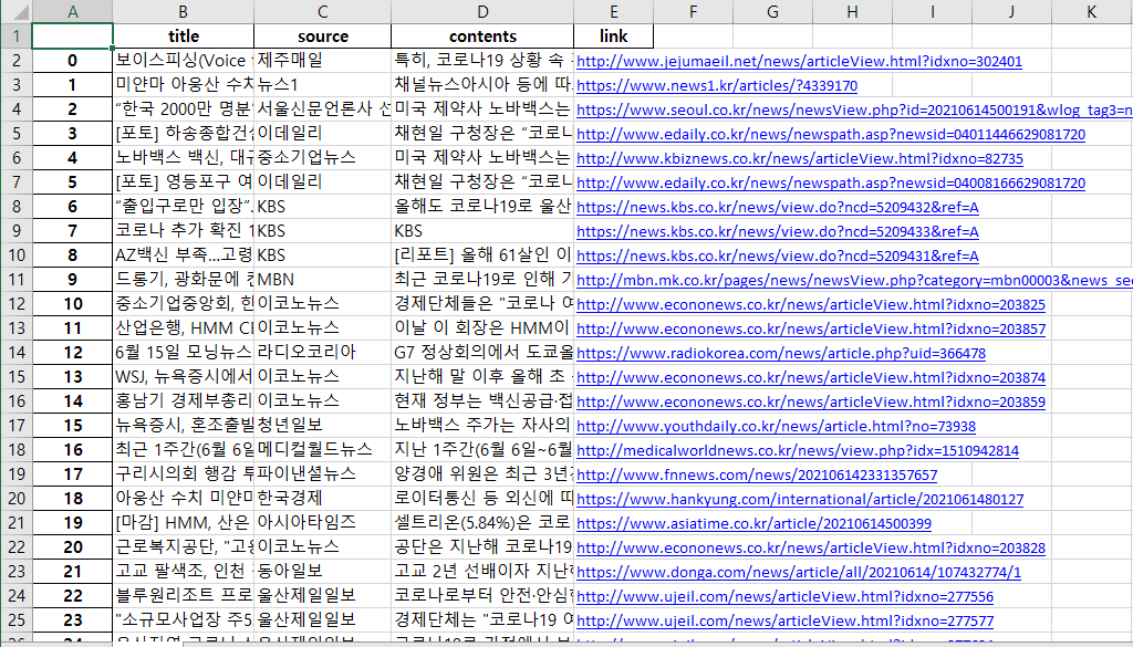 - 크롤링 해오는 것 : 링크,제목,신문사,내용요약본