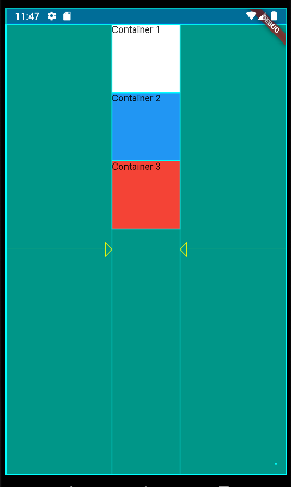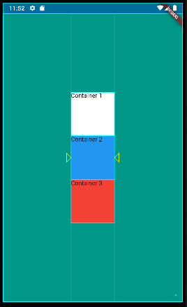 mainAxisAlignment: MainAxisAlignment.center, container들을 정중앙에 배치하려면 children의 세로축 위치 조정