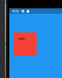 > Text를 추가하자 Text 사이즈에 컨테이너 사이즈가 맞춰주어 글자가 있는 배경만 빨강, 다시 화면 배경은 파랑으로 바뀜