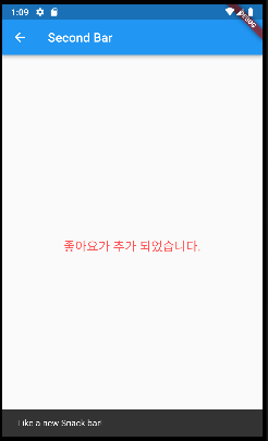 ScaffoldMessenger.of(context).showSnackBar( // 1.Scaffold.of 메소드는 가장 가까운 Scaffold 위치를 찾아서 반환하라는 의미.