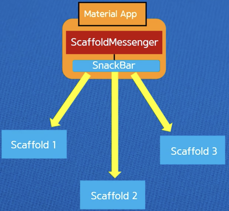 위젯트리 최상위 위치에서 흩어져있는 자손 Scaffold 위젯을 등록해서 SnackBar를 수신할 수 있도록 한데 묶어 관리하는 것 = ScafflodMessenger (플러터 2.0 이후 패치됨)
