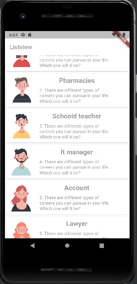 - ListView에 나올 card들의 크기를 지정할 때, Container / SizedBox 두 가지를 사용할 수 있음.