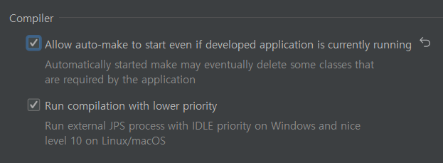 3. Setting 끄지말고 Build, Execution, Deployment - Compiler 에서 프로젝트 자동 빌드 체크!