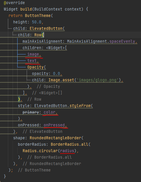 그래서 이미지를 하나 더 넣어 위젯 내 요소수를 3개로 만들고 SpaceEvenly 속성을 이용하면 버튼 중앙에 text나 그림을 적당하게 배치 시킬수 있다.