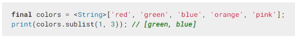 List<String> rainbow = [ '빨', '주', '노', '초', '파', '남', '보'];