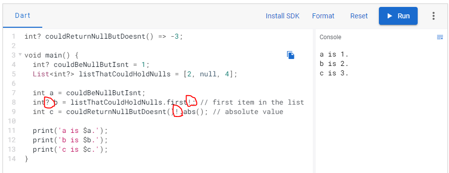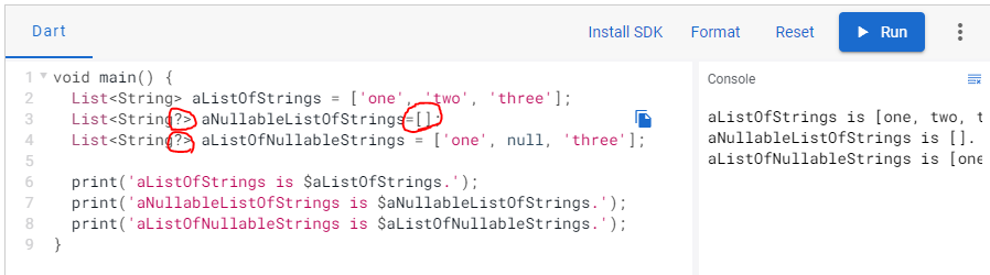 - 변수를 생성할때 null 값을 절대 가질수 없게 Null Safety를 기본값으로 지정하자는 것