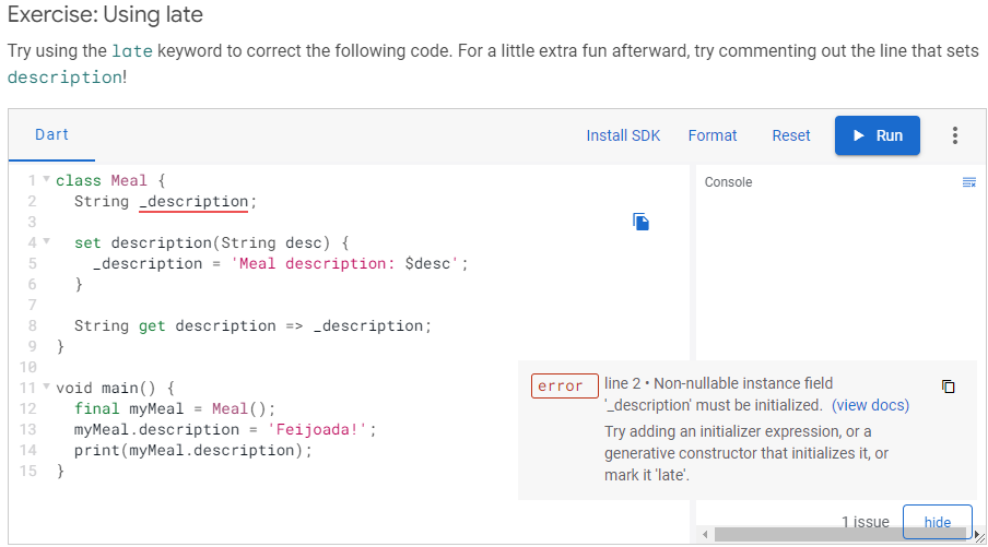 해결책 2) (나중에 변수값이 할당되는 경우) 타입 앞 late