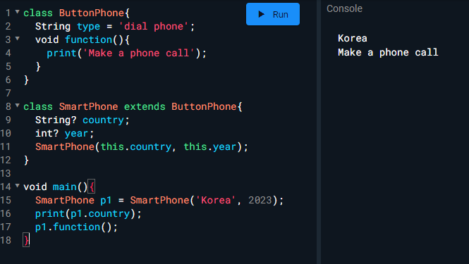 > 상속 받아서 SmparPhone 클래스는 SmparPhone 클래스의 변수, 메서드 다 쓸수 있음