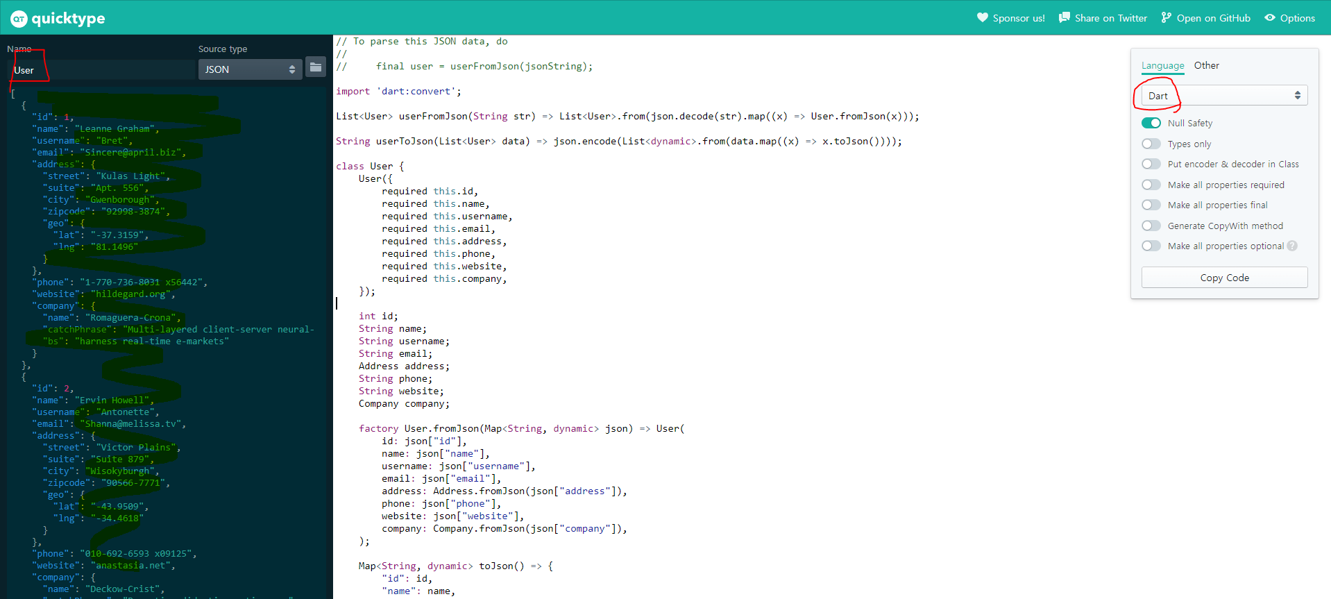 model을 빠르고 쉽게 생성하기 위해서 quicktype 이용